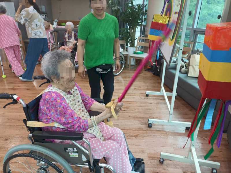 어르신들과 함께 신체활동으로 피냐타를 하는 시간을 가졌습니다.