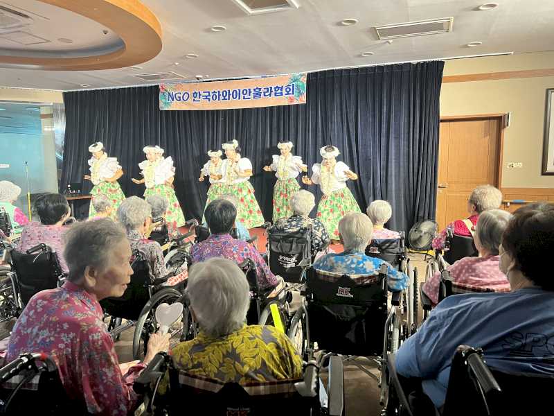 한국하와이안훌라협회에서 방문하여 어르신들꼐 아름다운 훌라춤 공연을 선물해주셨습니다.