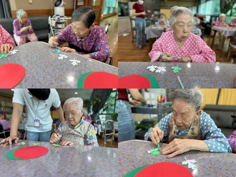 어르신들과 함께 여름을 맞이해 수박 모형의 모빌을 만들어보는 시간을 가졌습니다.
