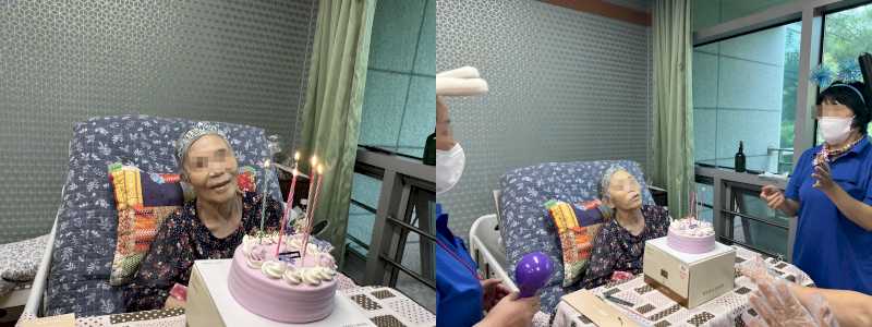 각방 어르신과 요양보호사님들과 함께 축하하는 시간을 가졌습니다.