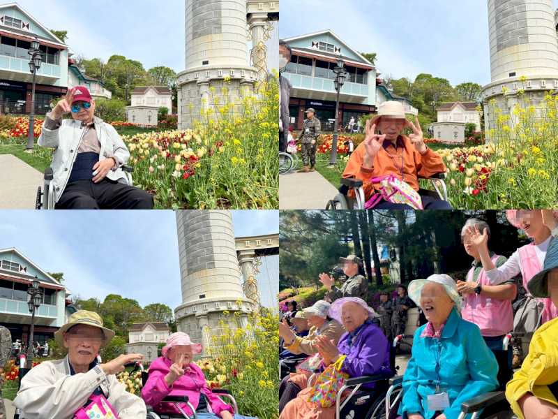 손자같은 군인분들과 즐겁게 이야기하시고 이쁜 꽃들과 멋진 퍼레이드 구경하시며 즐거운 시간을 보내셨습니다.