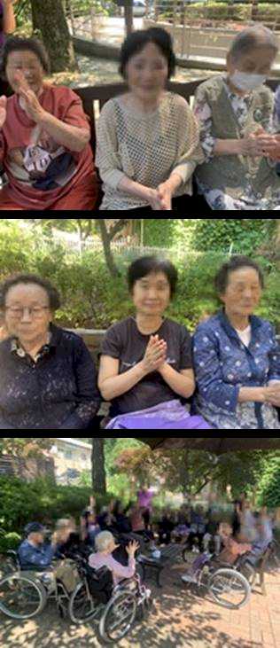 노래방 기계로 원하는 노래 부르시고, 흥겨운 음악에 손뼉치며 즐겁게 참여하셨습니다.