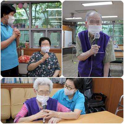 어르신들이 노래부르는 시간을 가지며 노래부르는 시간을 좋아하시며