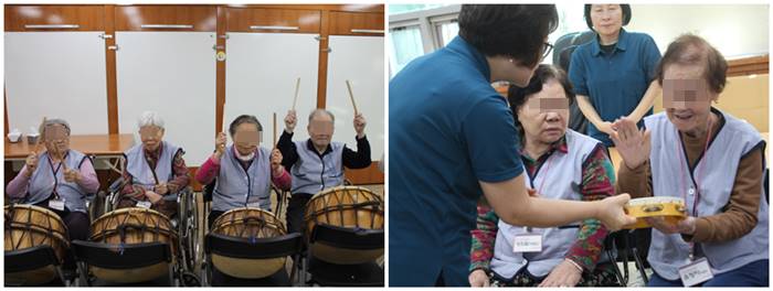 신나게 음악에 맞춰 탬버린, 북을 치시면서 스트레스를 날려버리셨답니다.