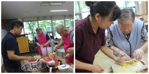 170718 요리활동(수박화채만들기) 페이지 정보 작성자 운영자 댓글 0건 조회 868회 작성일 19-03-12 17:17 본문 어느 무더운 여름날.. 어르신들과 함께 시원한 수박화채를 만들어 보았습니다. 목록 이전글170724 실내스포츠(홀탁구) 19.03.12 다음글170630 음악치료 19.03.12 댓글목록 댓글목록 등록된 댓글이 없습니다.