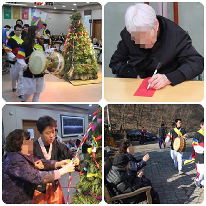 그 후에는 한지에 한 해 소망을 적어 달집에 매달아 요양원 운동장에서 달집태우기를 하며