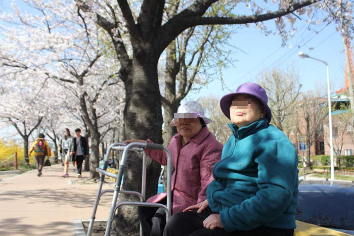 예쁘게 휘날리는 벚꽃을 보며 행복해 하셨답니다.