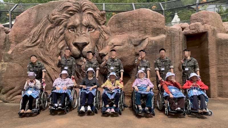 군인 봉사자 분들이 어르신들과 즐겁게 이야기도 나누고 동물도 구경하며 즐거운 시간을 보내셨습니다.