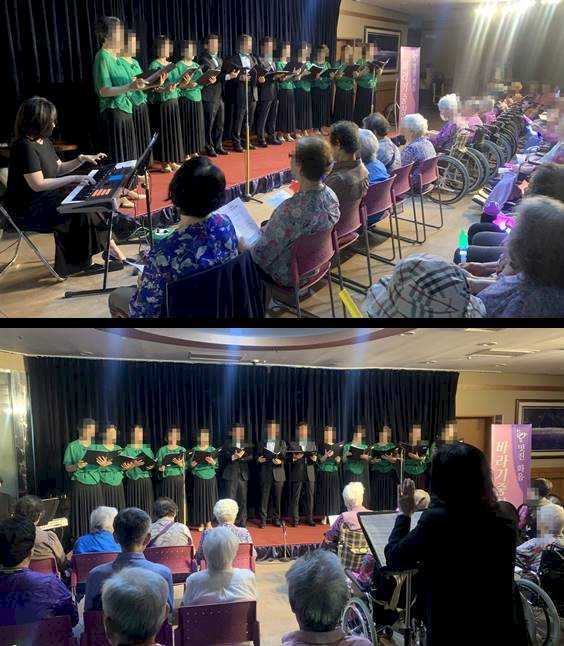 바라기 중창단의 공연 관람하시며 즐거워 하셨습니다.