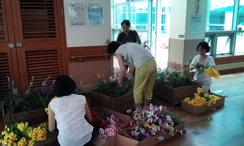 만안여성화훼장식반에서 봉사를 오셔서 2층 중정을 아름답게 꾸며 주셨습니다.