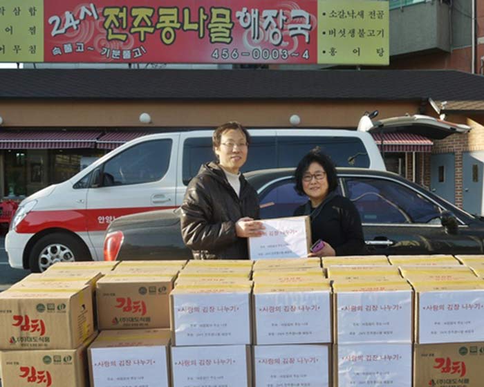 2013. 11. 21 전주콩나물해장국 페이지 정보 작성자 운영자 댓글 0건 조회 817회 작성일 13-11-28 17:23 본문 2013. 11. 21 전주콩나물해장국에서 김장김치를 후원해 주셨습니다. 목록 이전글2013. 11. 21 고려개발 13.11.28 다음글2013. 11. 20 한화생명 13.11.28 댓글목록 댓글목록 등록된 댓글이 없습니다.