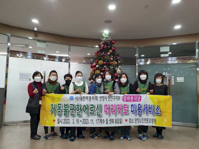 이미용봉사를 위해 만안구 미용협회에서 방문해 주셔서 어르신들의 이미용을 맡아주셨습니다.
