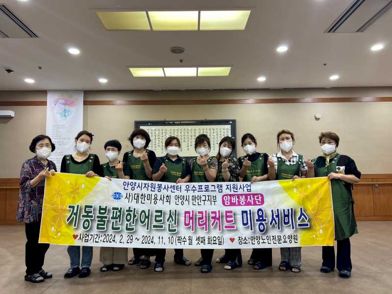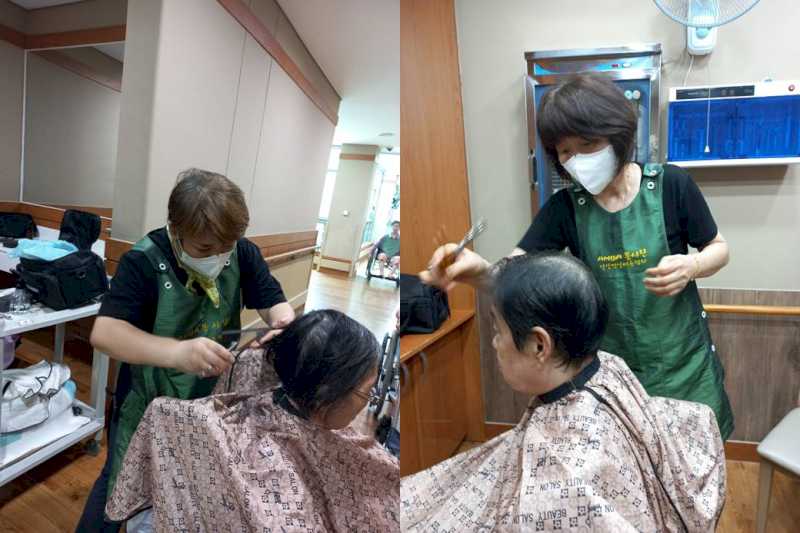이미용봉사를 위해 만안구 미용협회에서 방문해 주셔서 어르신들의 이미용을 맡아주셨습니다.