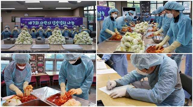 스크린에이치디코리아에서 후원해주신 후원금을 절임배추 및 김치 양념을 구매하였고 임직원들이 방문하여 김장김치를 담가주셨습니다.