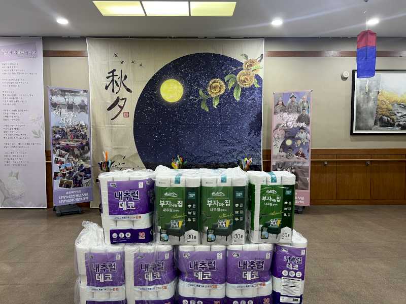 스포츠마사지 봉사자분께서 어르신들을 위해 생활용품을 후원해주셨습니다.