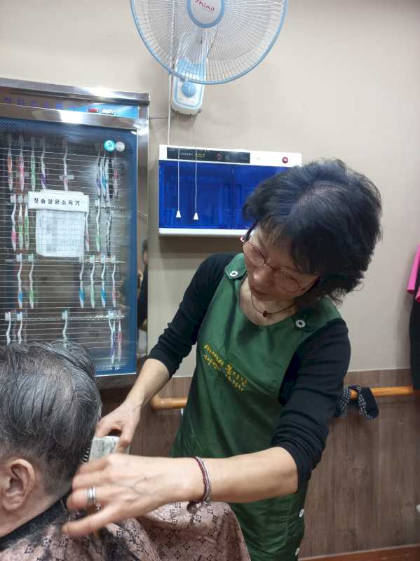 이미용봉사를 위해 만안구 미용협회에서 방문해 주셔서 어르신들의 이미용을 맡아주셨습니다.