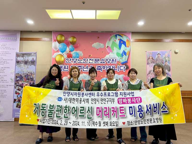 이미용봉사를 위해 만안구 미용협회에서 방문해 주셔서 어르신들의 이미용을 맡아주셨습니다.